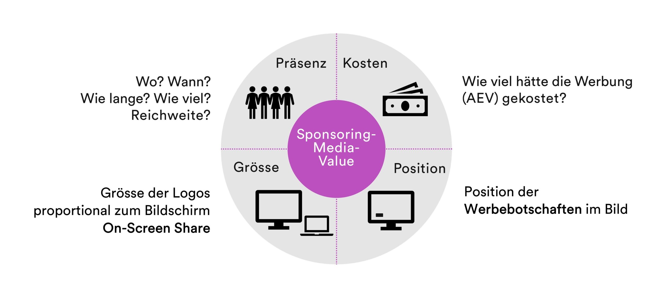 Wir liefern auf Ihre Bedürfnisse zugeschnittene Analysen, die sämtliche Aspekte des Sponsorings umfassend abdecken – von Medien-Kanälen bis zu Vor-Ort-Aktivitäten.